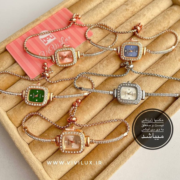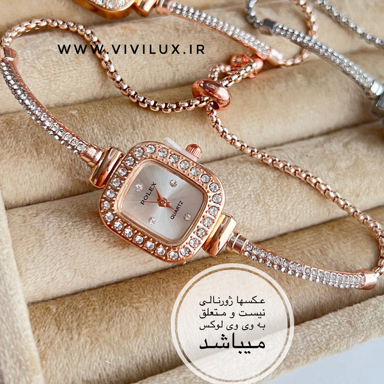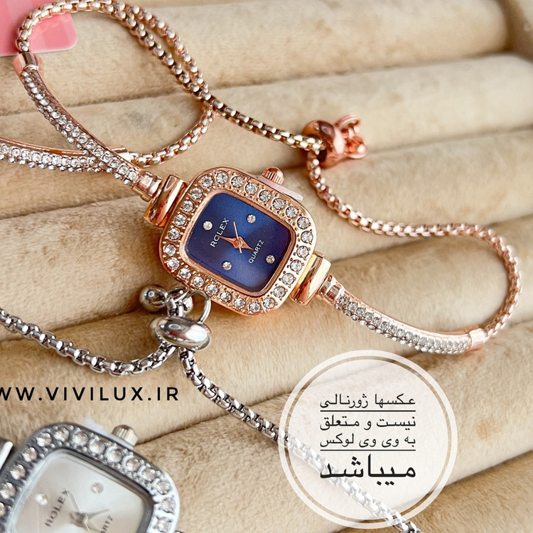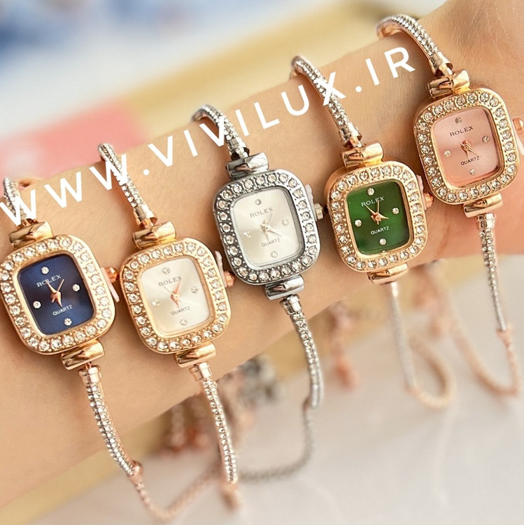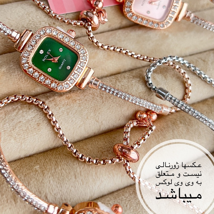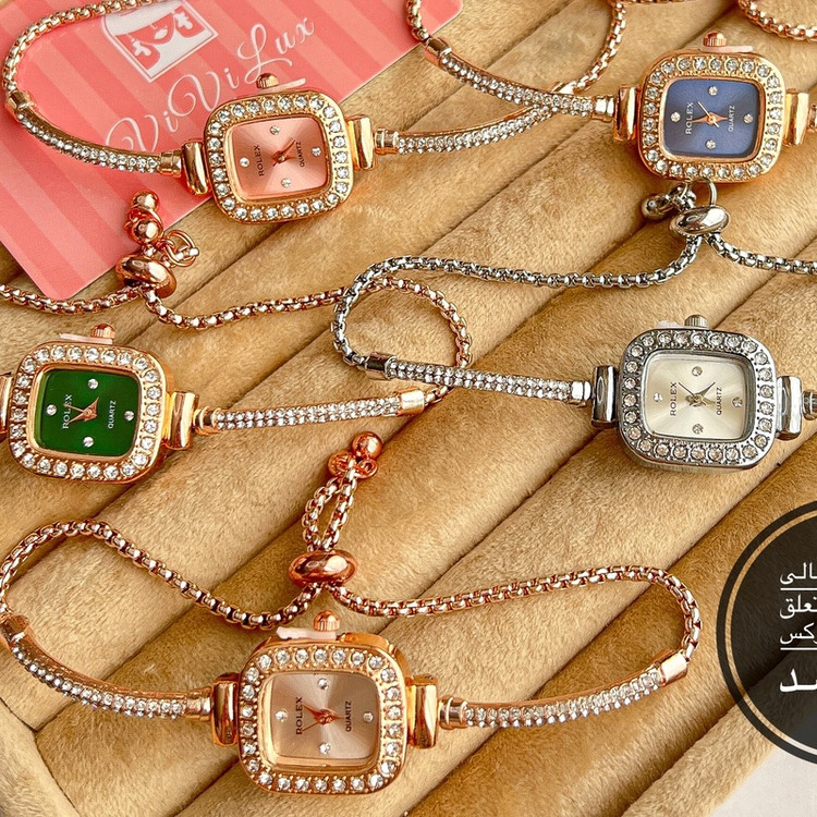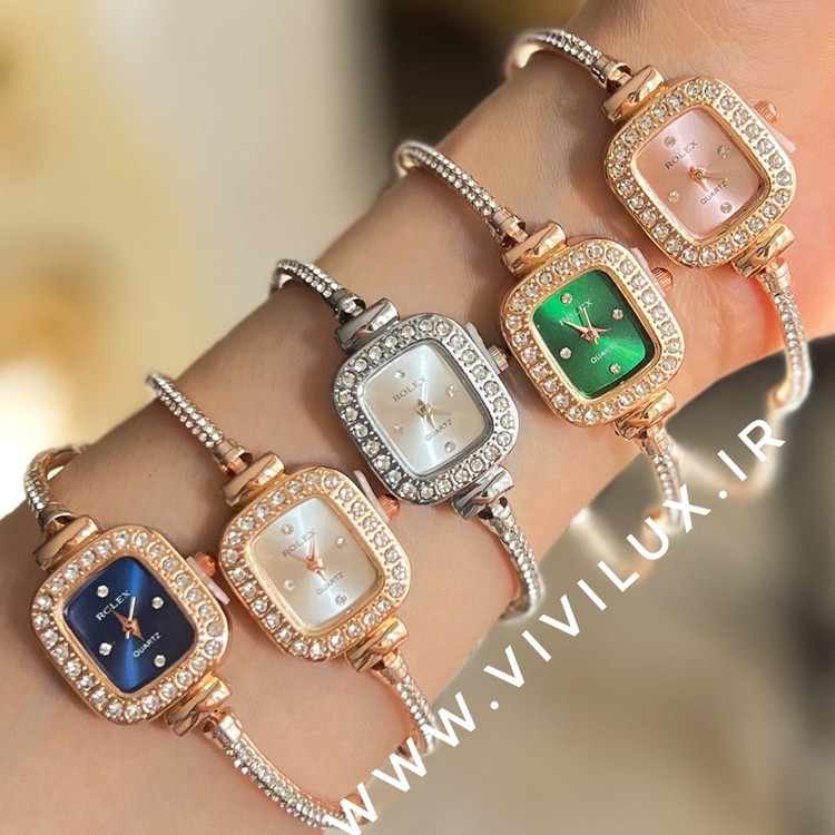 ساعت زنانه و دخترانه رولکس فول نگین مجلسی بند کراواتی آسانسوری خاص و لوکس