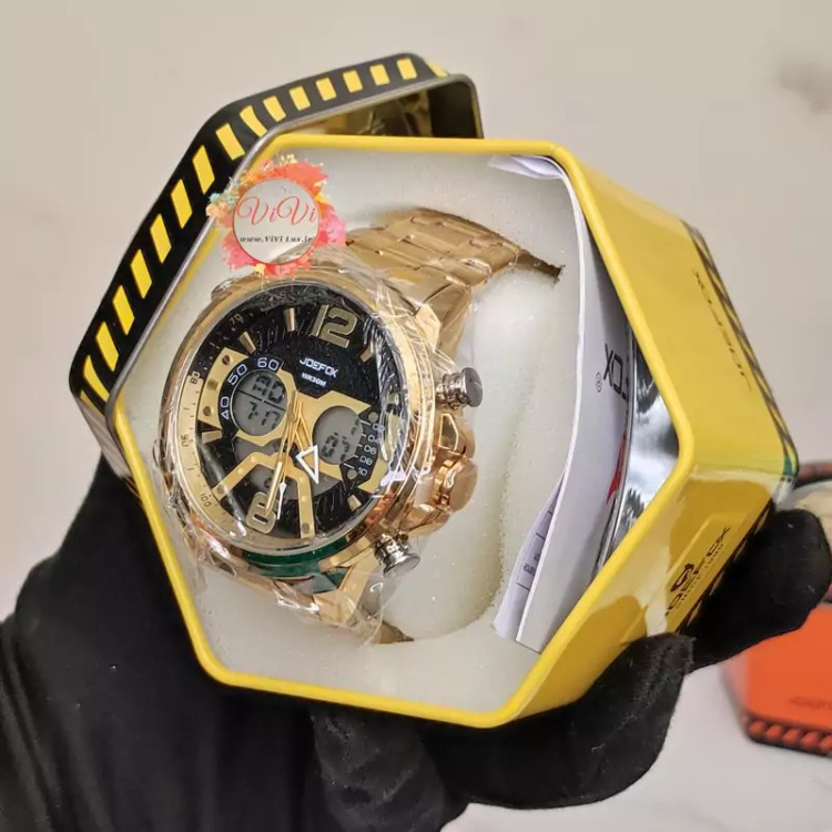 ساعت مچی مردانه اورجینال دو زمانه جوفاکس مدل رویال BLACK and GOLD سری SANDA جی فوکس