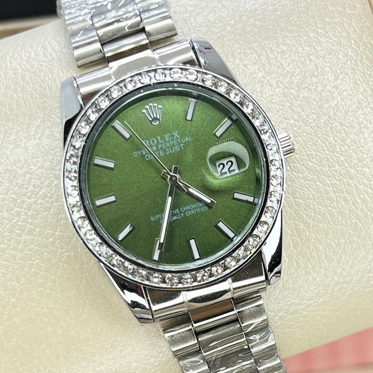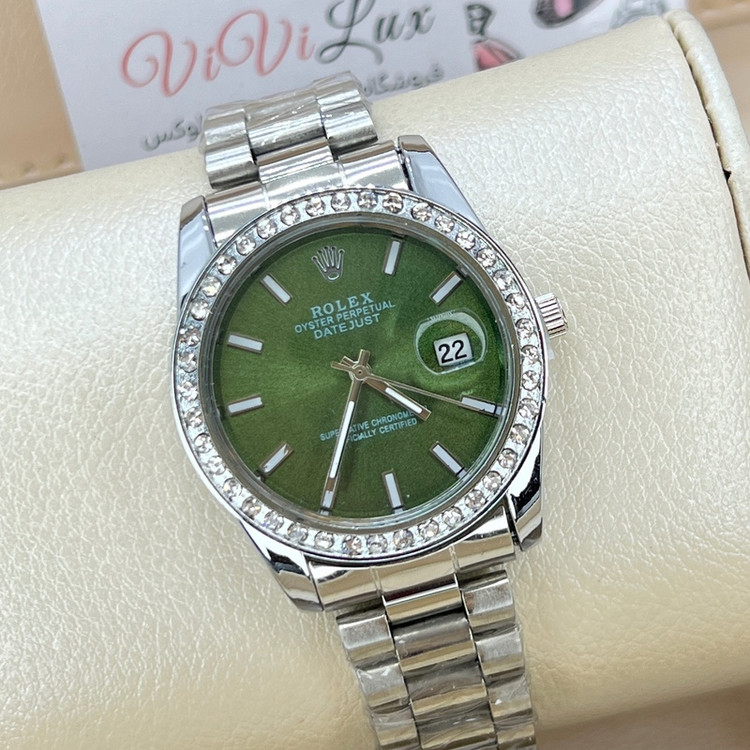 ساعت رولکس صفحه سبز دور نگین قاب متوسط زنانه و مردانه خاص Rolex