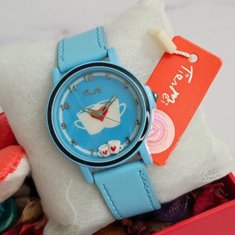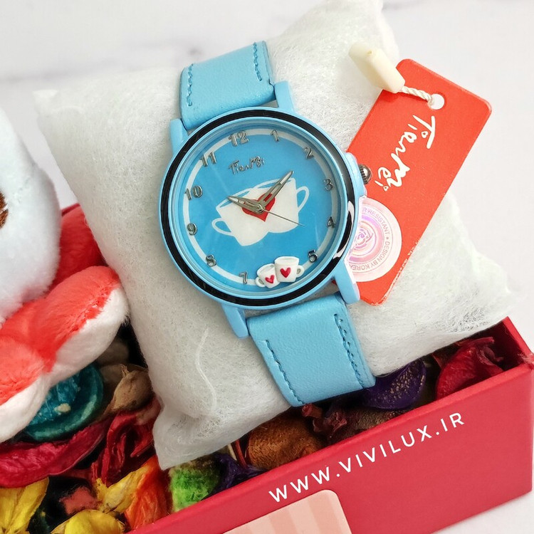 پک کادویی زنانه آبی عاشقانه ساعت موتور ژاپن زنانه و اختاپوس و جاکلیدی و گلبرگ و کد 132