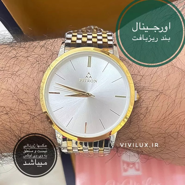 ساعت مردانه اورجینال ضدآب بند ریز بافت لوکس استیل رنگ ثابت برند فیترون FITRON