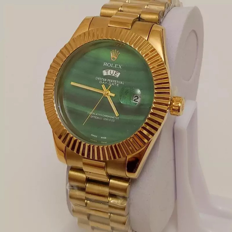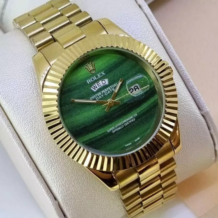 ساعت رولکس DAY DATE قفل رولکسی اصلی صفحه سبز بند استیل توپر