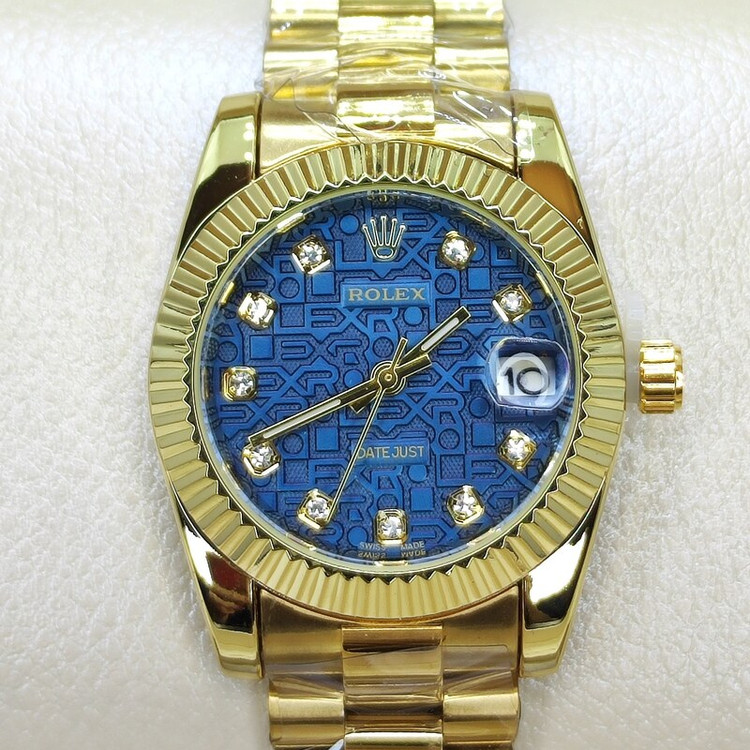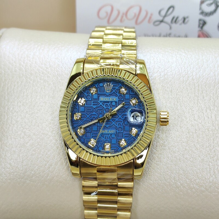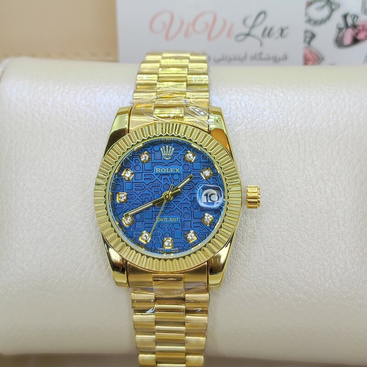 ساعت مچی رولکس ROLEX زنانه قفل اصلی کیفیت عالی AAA صفحه آبی حروف دار حکاکی دیت جاست پشت هولوگرام دار