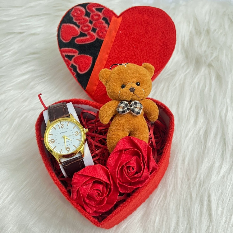 ست هدیه ولنتاین مردانه لوکس با ساعت گل و خرس کادوی مردانه ولنتاین