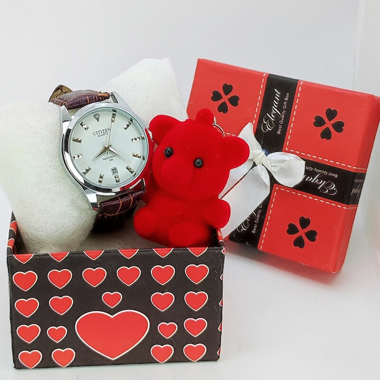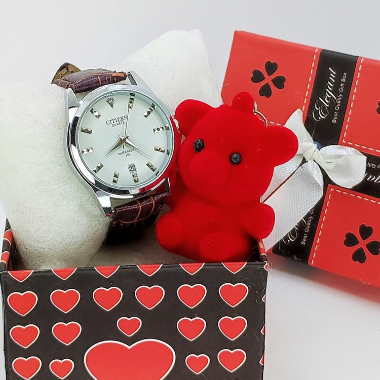 پک ست هدیه زنانه ساعت سیتیزن چرمی کد 104 ولنتاین روز عشق زن دختر مادر سالگرد