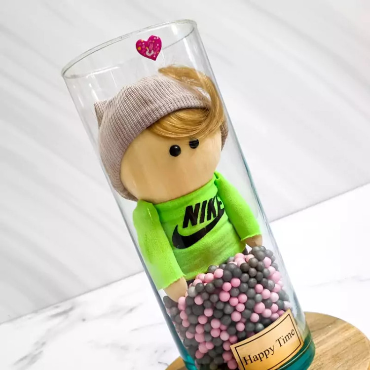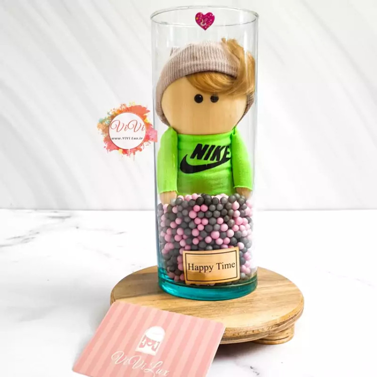 گوی و عروسک روسی ولنتاین با استوانه شیشه ای کیفیت بالا پسرک نایک پوش