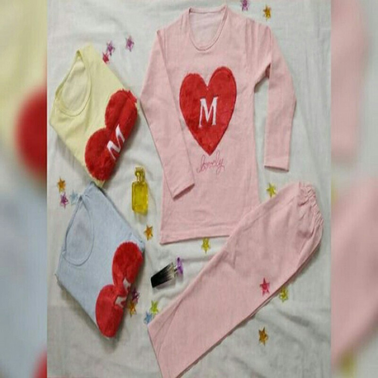 بلوز شلوار لاو قلبی جنس ملانژ درجه یک مناسب برای سایز 35 رنگبندی قهوه ای روشن