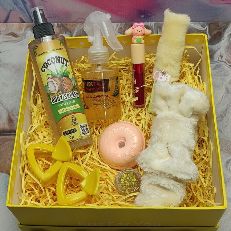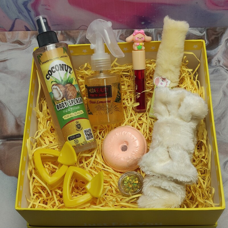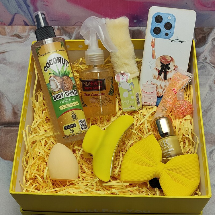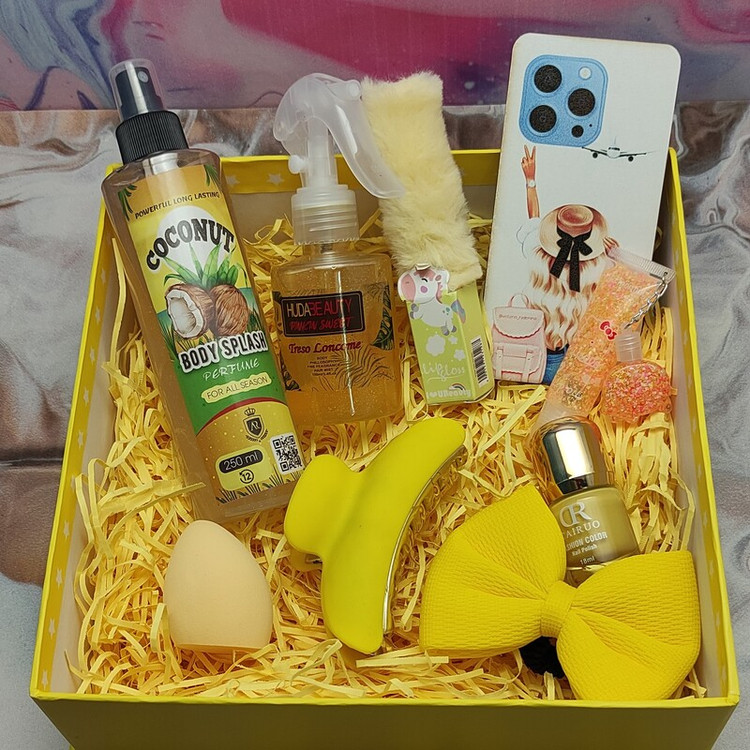 باکس هدیه دخترانه و زنانه اقتصادی زرد و نارنجی تولد سالگرد مناسبتی کد 045