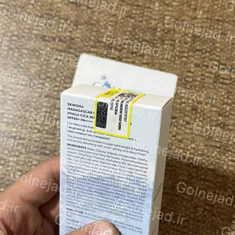 ضد آفتاب آبرسان ماداگاسکار اسکین 1004 سنتلا کره ای اصل بافت فلوئیدی حاوی هیالورونیک اسید مناسب انواع پوست حجم 50 میل