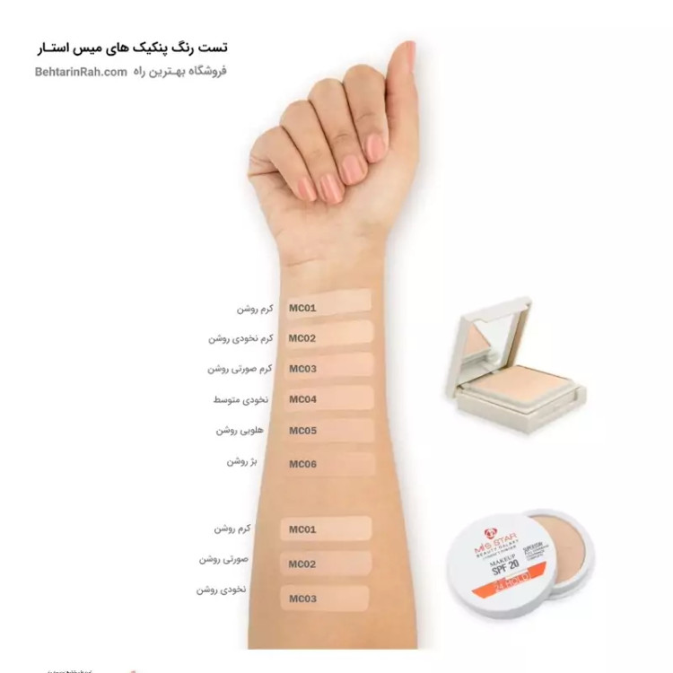 پنکیک میس استار مدل 5In1 شماره MC02 رنگ صورتی روشن مناسب برای افراد با پوست روشن و پوست گندمی می باشد. این پنکیک فاقد چربی یا Oil-Free می باشد و در گروه رنگی با تناژ صورتی قرار می گیرد. پنکیک میس استار شماره MC02 رنگ صورتی روشن برای انواع پوست خشک، چرب و مختلط مناسب است اما به دلیل فاقد چربی بدون این محصول بیشتر به افراد با پوست چرب توصیه می شود. همانطور که می دانید پنکیک یکی از مواد اصلی آرایش است و برای یک دست کردن و پوشانندگی بیشتر بر روی پوست صورت استفاده می شود که کیفیت و نوع خواب آن بسیار حائز اهمیت است. پنکیک میس استار شماره MC03 رنگ نخودی روشن با قابلیت تثبیت کنندگی خود باعث ماندگاری بالای آرایش صورت خانم ها می شود و بافت مخملی و نرمی را بر روی پوست صورت ایجاد می کند.کیفیت مواد طبیعی به کار رفته در پنکیک میس استار شماره MC02 رنگ صورتی روشن باعث ایجاد بافتی نرم و سبک بر روی پوست می شود و هیچگونه احساس خستگی و سنگینی را منتقل نمی کند. پنکیک میس استار مدل 5In1 شماره MC02 رنگ صورتی روشن با ایجاد نمای مات و قدرت پوشانندگی بالا، تمام لکه های پوستی و تیرگی های پوست شما را می پوشاند و جلوه ای بشاش، شاداب و طبیعی را به چهره شما می دهد.