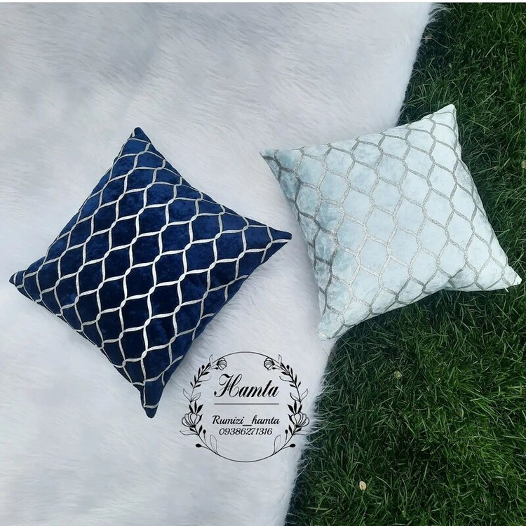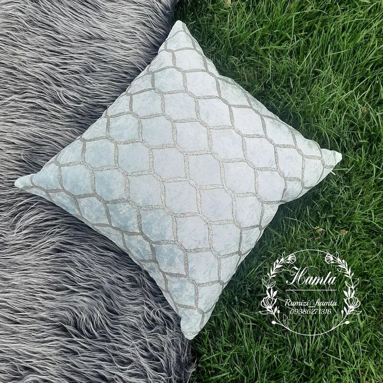 کاور کوسن چرم و مخمل طرح موج رنگ آبی آسمانی