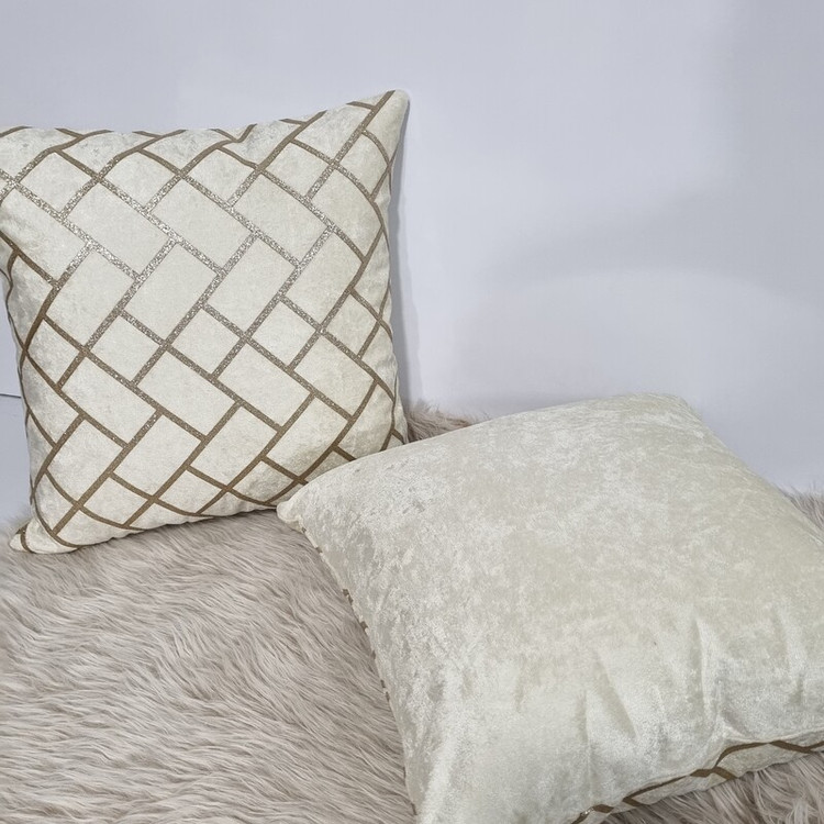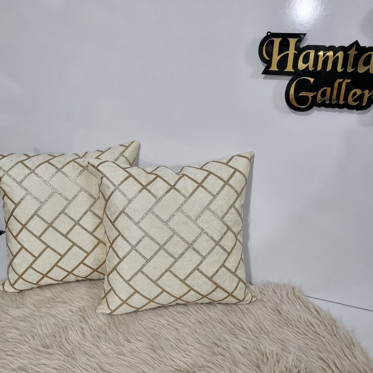 کاور کوسن چرم و مخمل طرح لاریز شیری رنگ