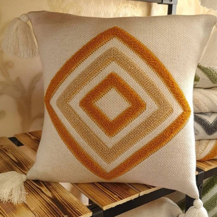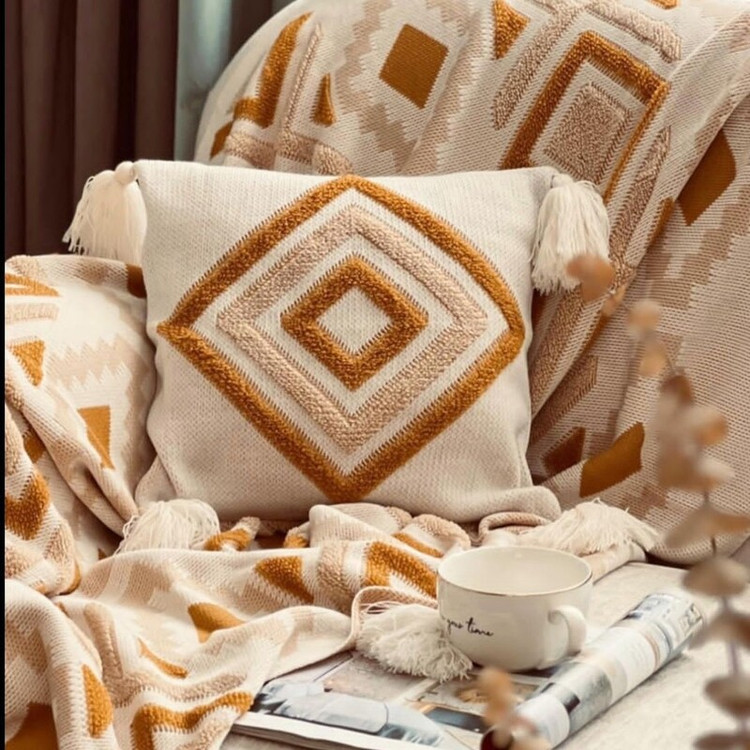 کاور کوسن بافت طرح پانچ رنگ خردلی
