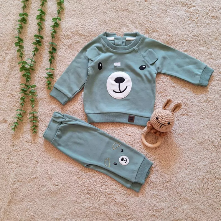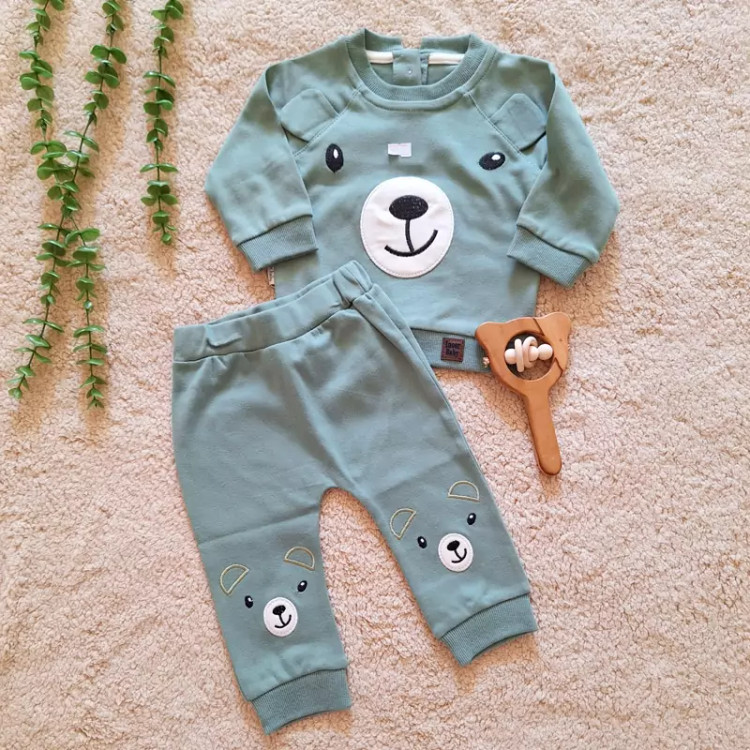 این محصول با کیفیت و بسیار زیبا تولید کشور عزیزمون ایرانه . فقط سایز 3 تا 6 ماهش موجوده از جنس پارچه دورس نخ هست . طرح خرس روی بلوز تکه دوزی شده و گوش هاش برجسته هست . پشت بلوز دو دکمه تعبیه شده تا گردن کوچولوتون موقع پوشوندن اذیت نشه
