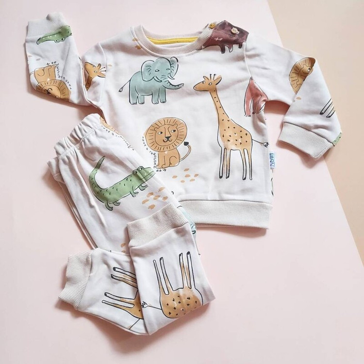 بلوز شلوار تمام چاپی مون از یه برند با کیفیت ایرانیه . چاپ لباس ثابته و با شست و شو رنگ عوض نمیکنه . جنس پارچه به کار رفته دورس نخه و با پوست کوچولوی شما سازگاره . کنار یقه ی بلوز دو تا دکمه تعبیه شده که کمک میکنه بلوز رو راحت تن کوچولوتون کنید . سر آستین ها و دمپای شلوار کشبافت هست و مناسب فصل سرماست .