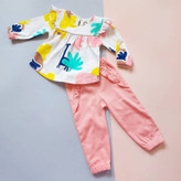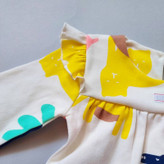 بلوز شلوار قشنگمون از یه برند با کیفیت ایرانیه . چاپ روی لباس ثابته و رنگ عوض نمیکنه. سر آستین های دالبری زیبایی بلوز رو دو چندان کرده. پشت بلوز یه دکمه تعبیه شده که موقع پوشوندن گردن کوچولوتون اذیت نشه . سر آستین های بلوز و دمپای شلوار کش داره و داخل لباس گرم میمونه . بلوز شلوار طراحی زیبا و تنخوری محشری داره . جنس پارچه نخ پنبه گرم بالاست و گرمه و مناسب فصل سرماست . پارچه به کار رفته با کیفیته و اصلا پرز نمیده .