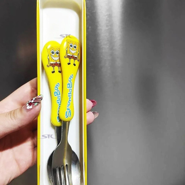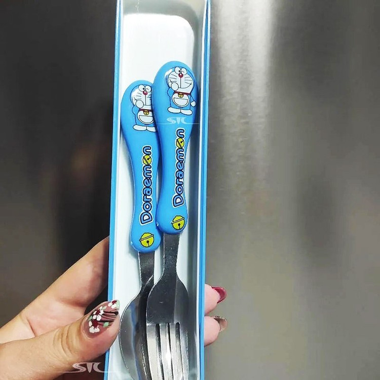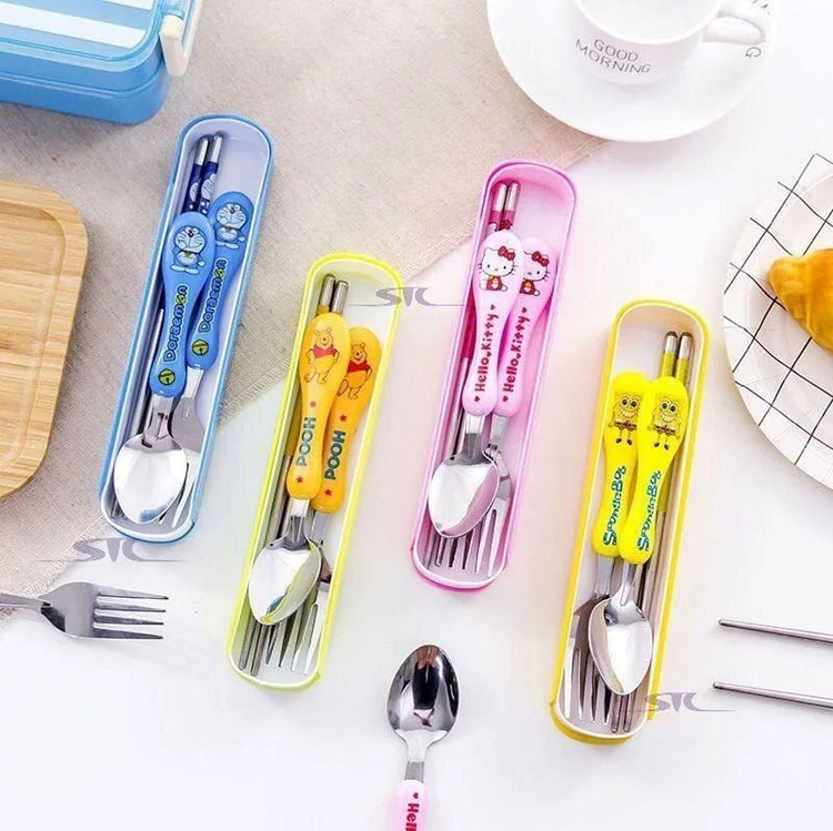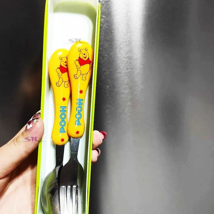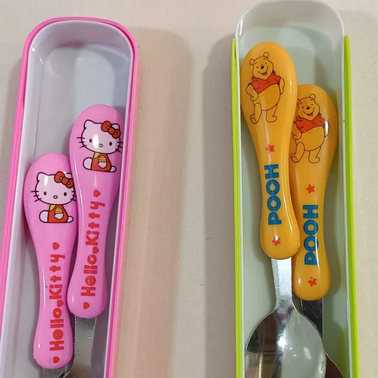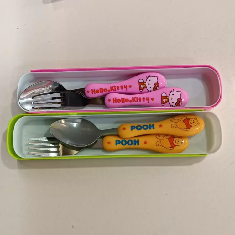 قاشق و چنگال کودک طرح دار با جعبه کشویی