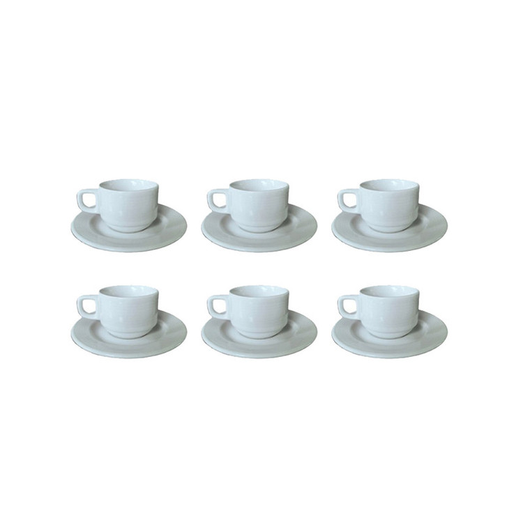 ست فنجان و نعلبکی 12 پارچه شرکت صنایع چینی تقدیس مدل هتلی رلیف