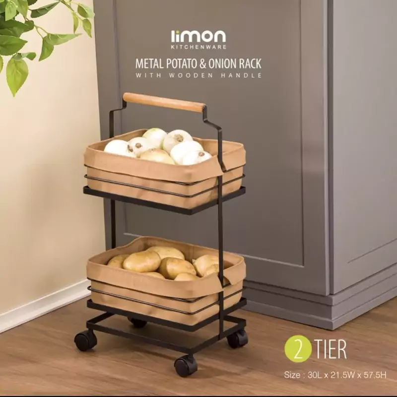 جاسیب زمینی و پیازدو طبقه دسته چوبی و پارچه دار لیمون دوطبقه