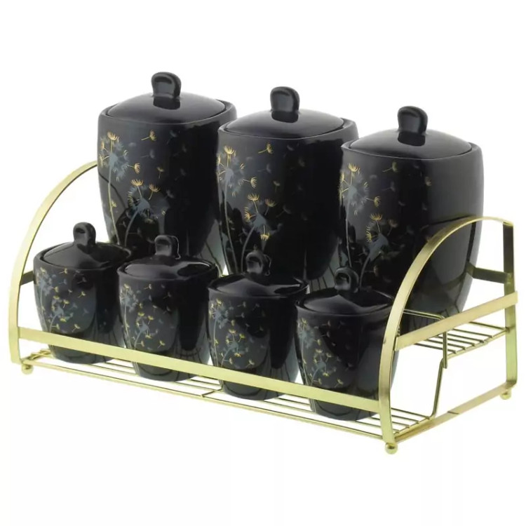 ست جا ادویه و پاسماوری 7 پارچه مدل قاصدک کد 1003B به همراه استند