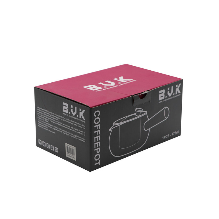 قهوه جوش تمام پیرکس 475ml با دسته ی بامبو قابل استفاده روی شعله ی مستقیم و اجاق های ماکروویو قابل شستشو در ماشین ظرفشویی طراح برند بی.وی.کی بدون اضافه کردن کادمیوم یا سرب. بسیار زیبا و با دوام