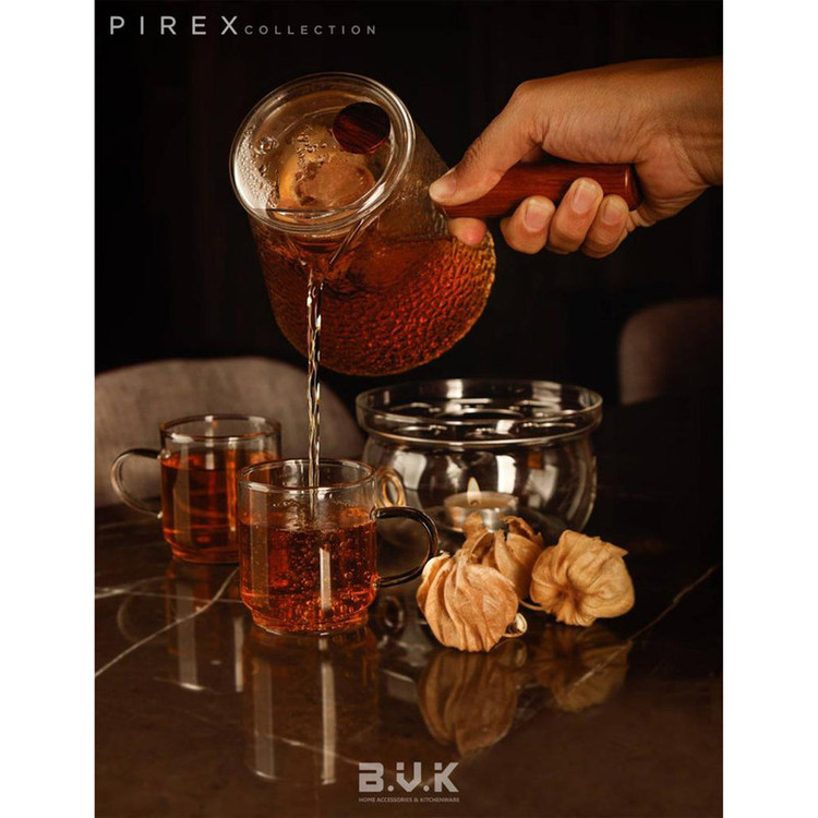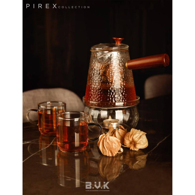 قهوه جوش تمام پیرکس 700ml با دسته ی بامبو قابل استفاده روی شعله ی مستقیم و اجاق های ماکروویو قابل شستشو در ماشین ظرفشویی طراح برند بی.وی.کی بدون اضافه کردن کادمیوم یا سرب. بسیار زیبا و با دوام