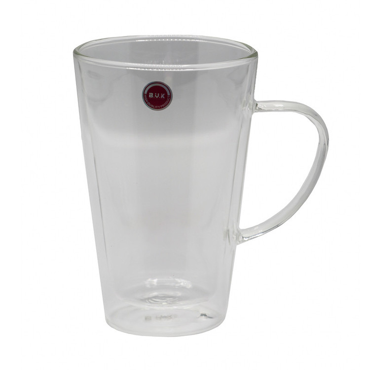 لیوان دو جداره دسته دار تمام پیرکس 300ML قابل استفاده روی شعله ی مستقیم و اجاق های ماکروویو قابل شستشو در ماشین ظرفشویی طراح برند بی.وی.کی بدون اضافه کردن کادمیوم یا سرب. بسیار زیبا و با دوام