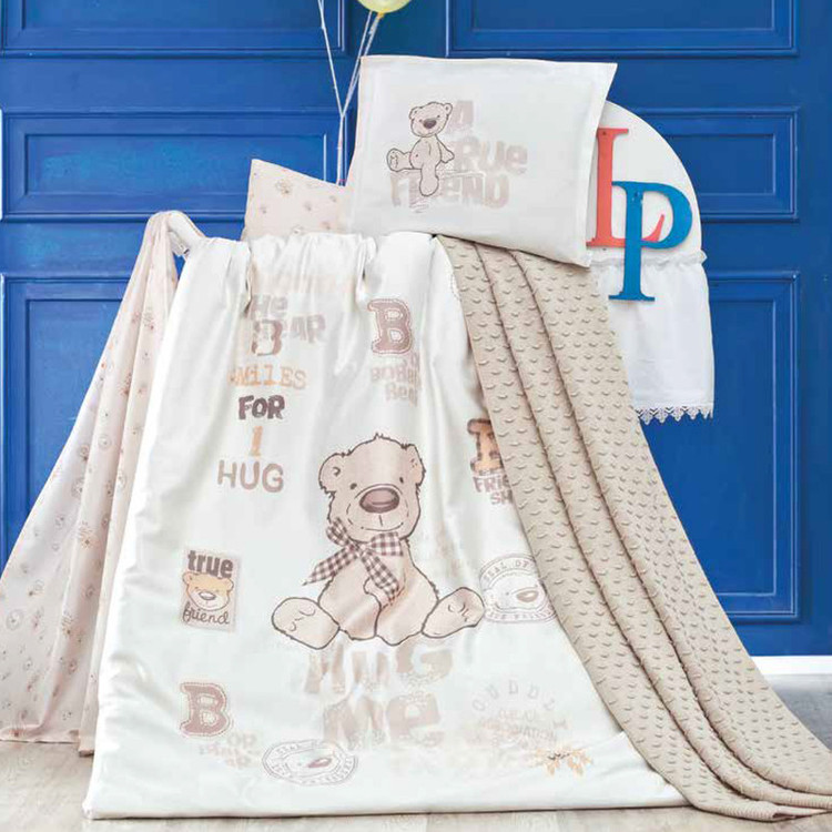سرویس ملحفه 5 تکه کودک شامل 1 عدد پتو بافتنی 100x150 1 عدد کاور لحاف 100x150 1 عدد کاور تشک 110x160 2 عدد روبالشی 35x45 می باشد. جنس پارچه ها 100% پنبه و ضد حساسیت و محصول کشور ترکیه می باشد