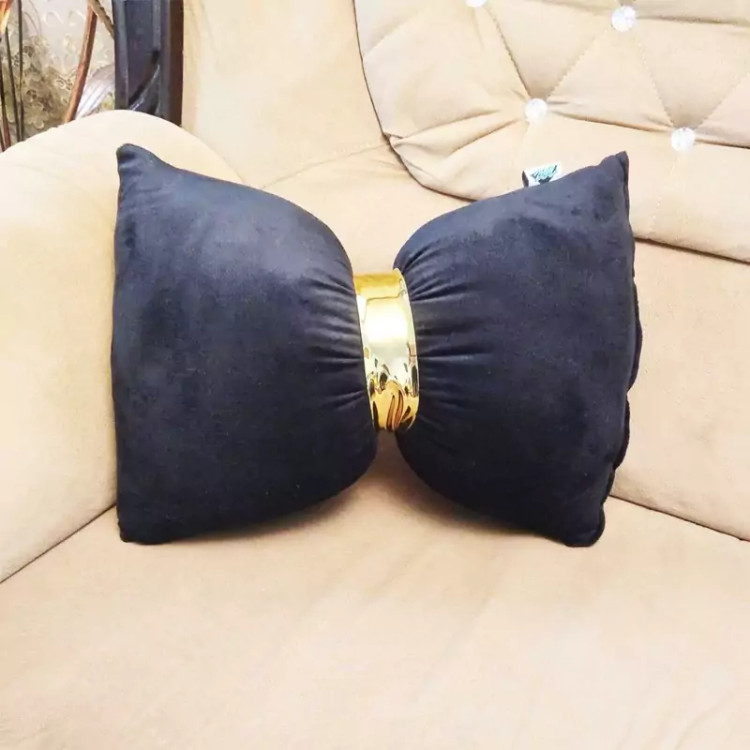 کوسن مخمل مدل پاپیون در ابعاد 50 در 40 سانتیمتر با پارچه مخمل میکروسافت درجه یک دوخته شده است و با یک کمر طلایی رنگ چرم مصنوعی تزیین شده است .