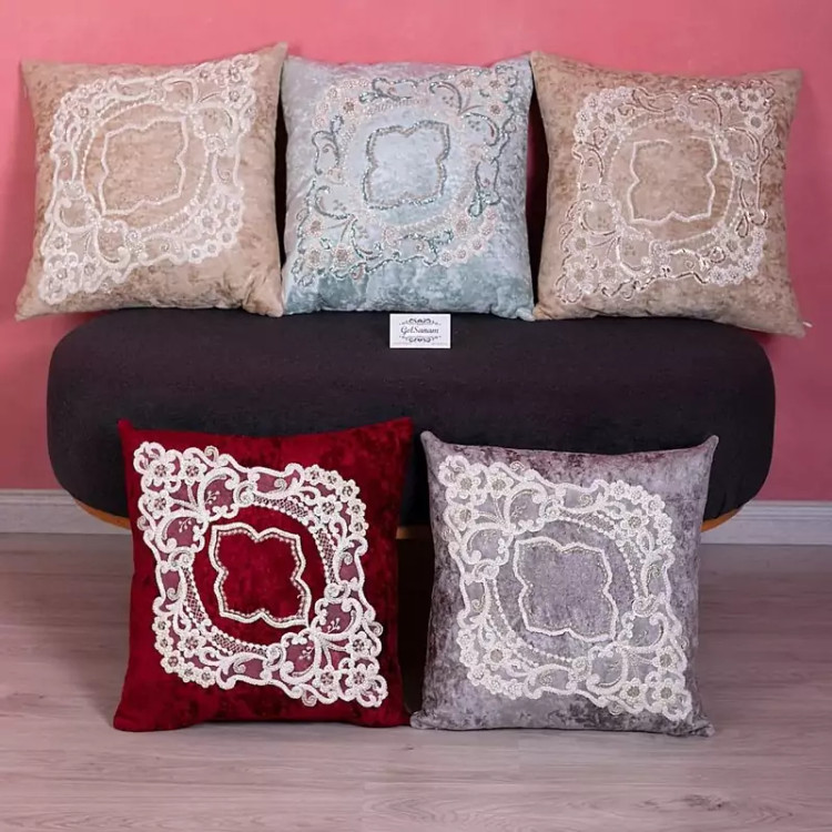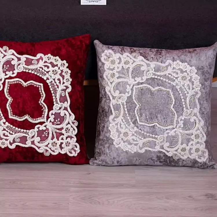 جفت کاور کوسن ملیله دوزی با دانتل و مخمل اعلا