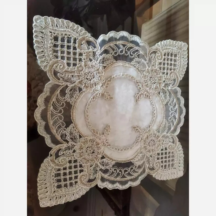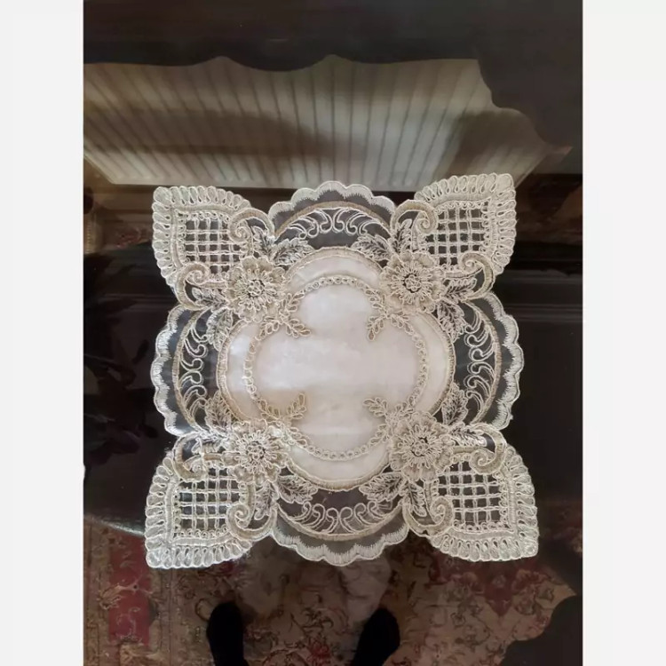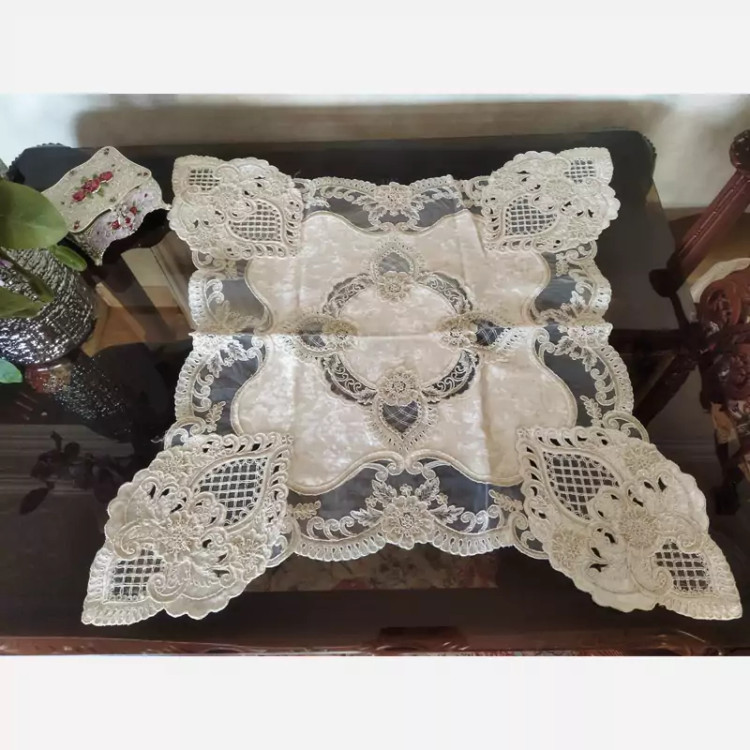 رومیزی سه تکه مربع مخمل دانتل ترک مناسب میز مبل
