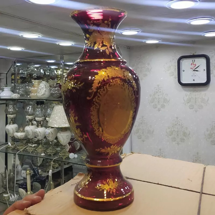 گلدان قرمز زرشکی طلا کوب ارتفاع ۳۴ سانتی مناسب دکور
