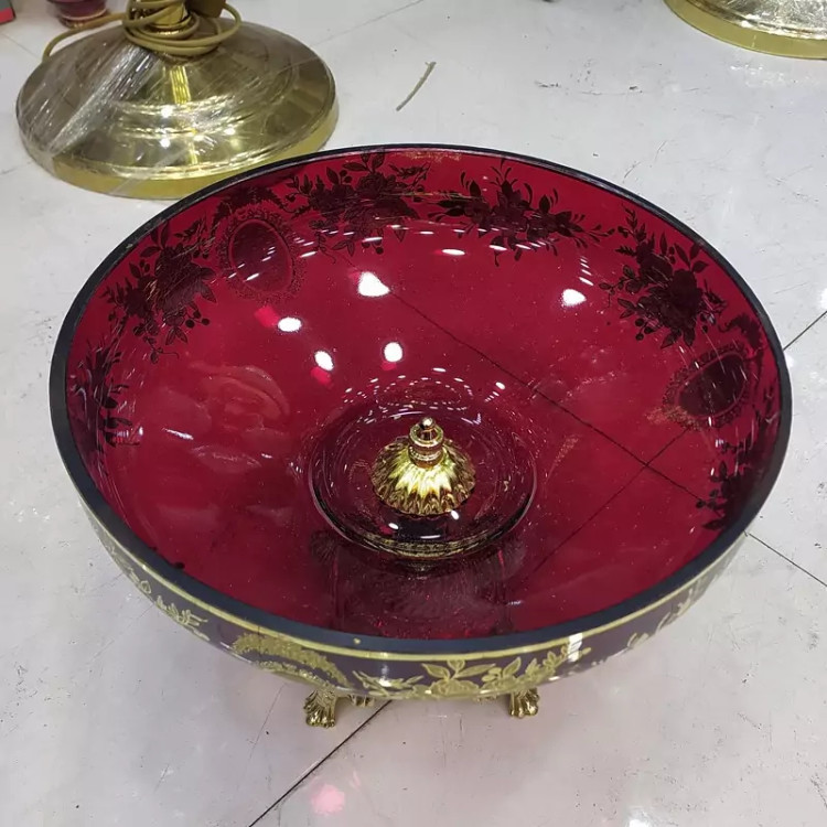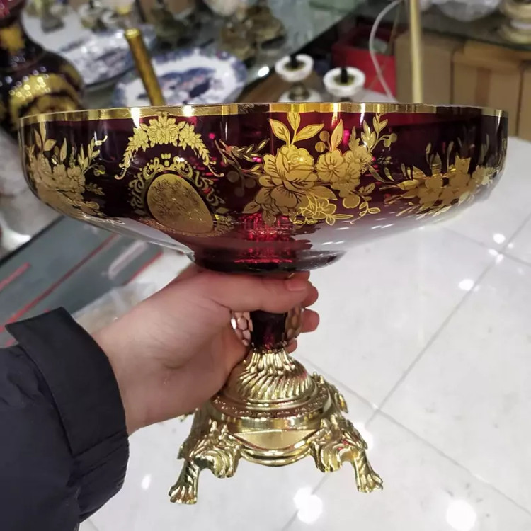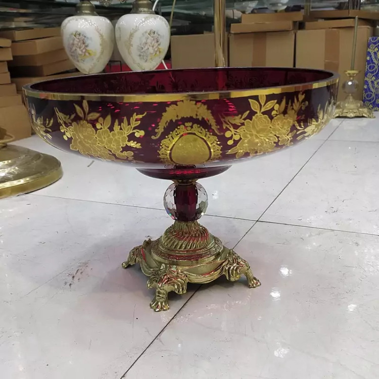 میوه خوری زرشکی طلاکوب پایه برنزی مدل خوشه گندم ارتفاع 23 سانت