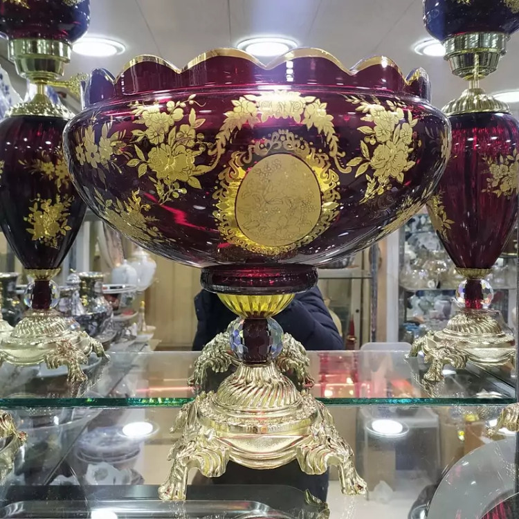 میوه خوری زرشکی طلا کوب بزرگ
