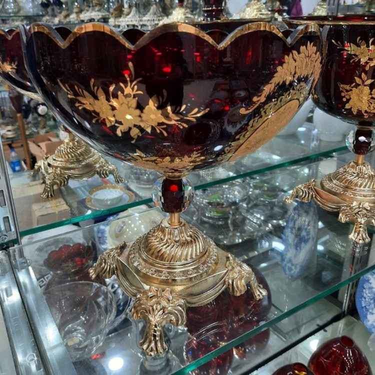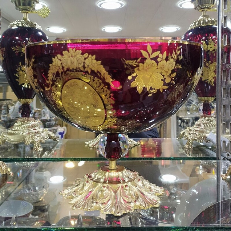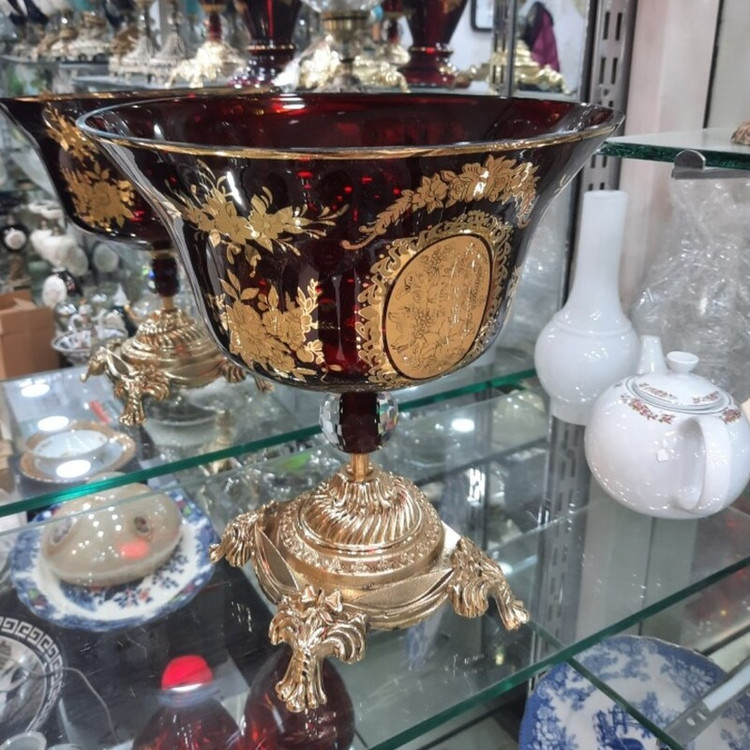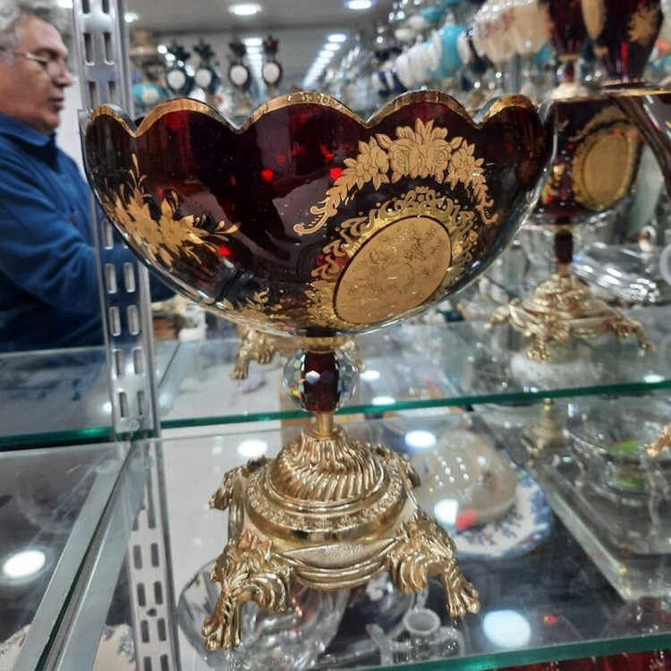 میوه خوری زرشکی پایه برنزی مدل خوشه گندم ارتفاع 30 سانتی متر