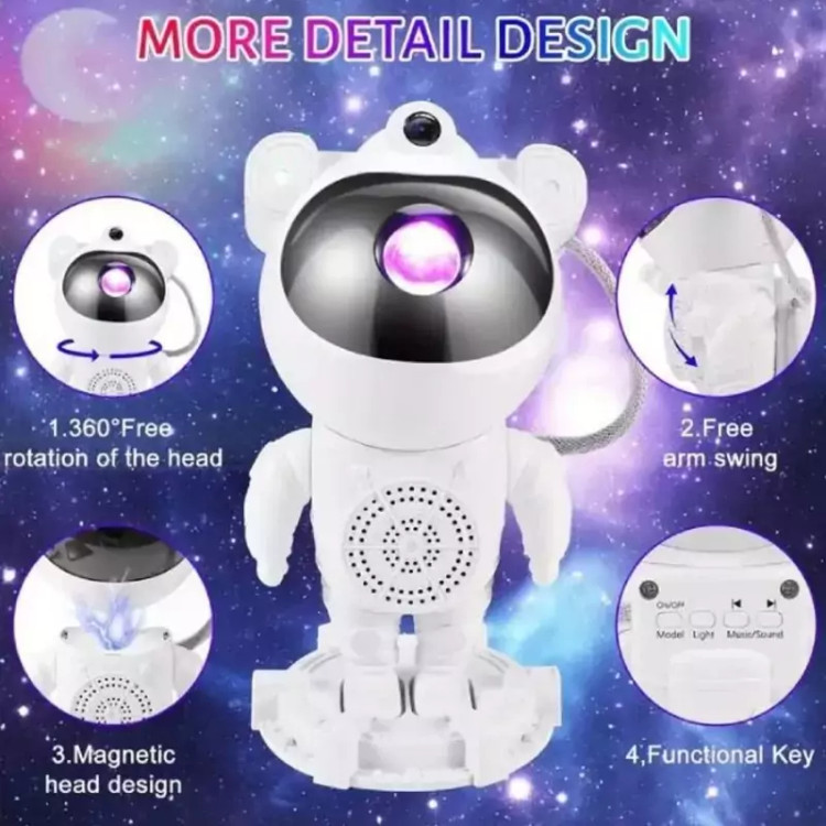 چراغ خواب کهکشانی موزیکال اسپیکردار مدل فضانورد ایستاده