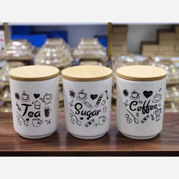 بانکه تکست تصویری گرد بانکه سرامیکی قهوه چای شکر ست پاسماوری سرامیکی بانکه چهارگوش سرامیکی بانکه مربع سرامیکی