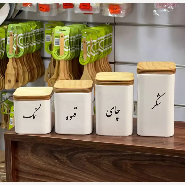 پاسماوری سرامیکی چهارگوش 4عددی بانکه قند و چای و شکر و قهوه 4گوش بانکه سرامیکی 4عددی