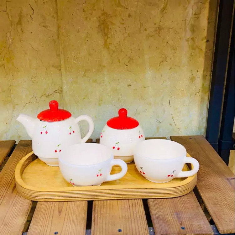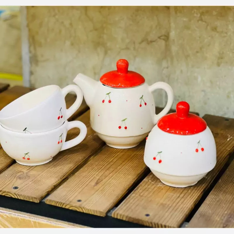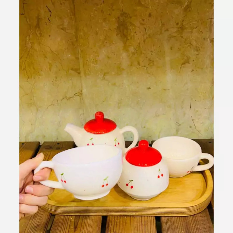 ست فنجان قوری سرامیکی آلبالو ست صبحانه خوری عروس ست قوری فنجان دونفره قرمز ست صبحانه خوری جهیزیه