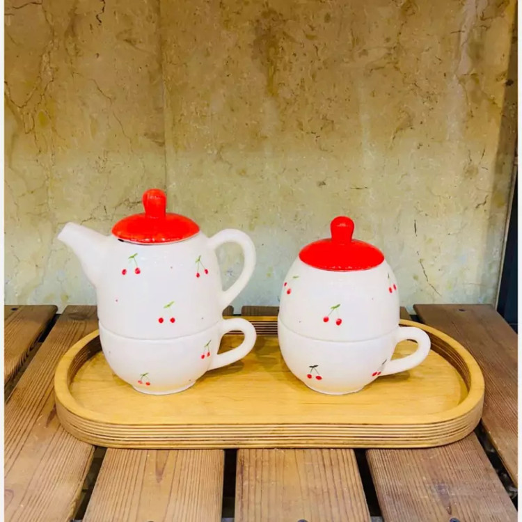 📌ست قوری و فنجان سرامیکی آلبالو