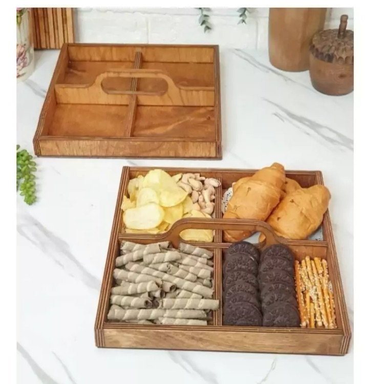 اردوخوری چوبی 4خانه باکس دسته دار 4خانه تنقلات خوری 4 خانه