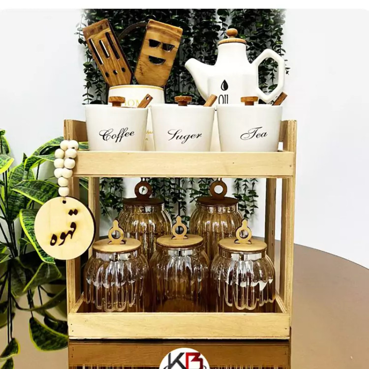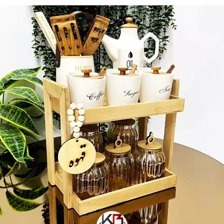 استند چوبی آشپزخانه چوبی دسته بغل استند ادویه استند نظم دهنده آشپزخانه