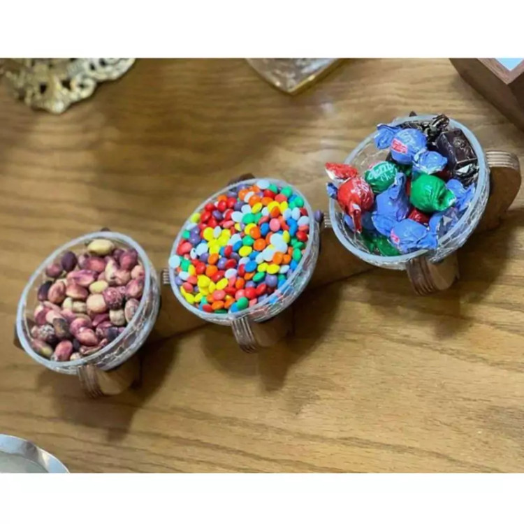 ست پیاله 3 عددی آبگز پایه چوبی پیاله سه عددی آبگز پیاله آبگز پایه چوبی