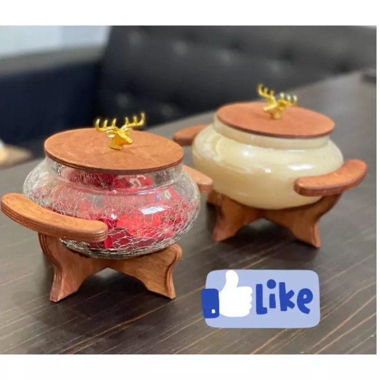 شکلات خوری آبگز و رنگی قندان پایه چوبی درب دار آبگز و شیشه رنگی