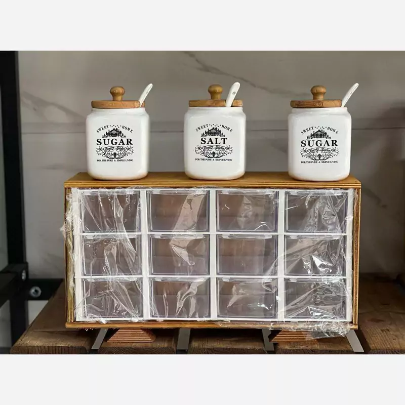 باکس ادویه 12کشو مقسم ادویه چوبی نرده ای 12 کشو استند آشپزخانه 12کشو