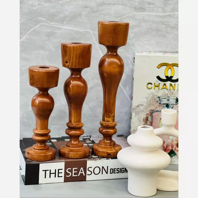شمعدان چوبی 3عددی چوب روس شمعدان عروس جاشمعی چوبی 3تایی ست شمعدان جهیزیه