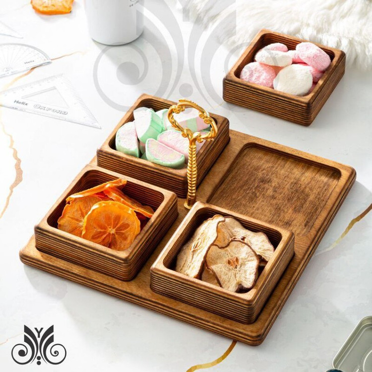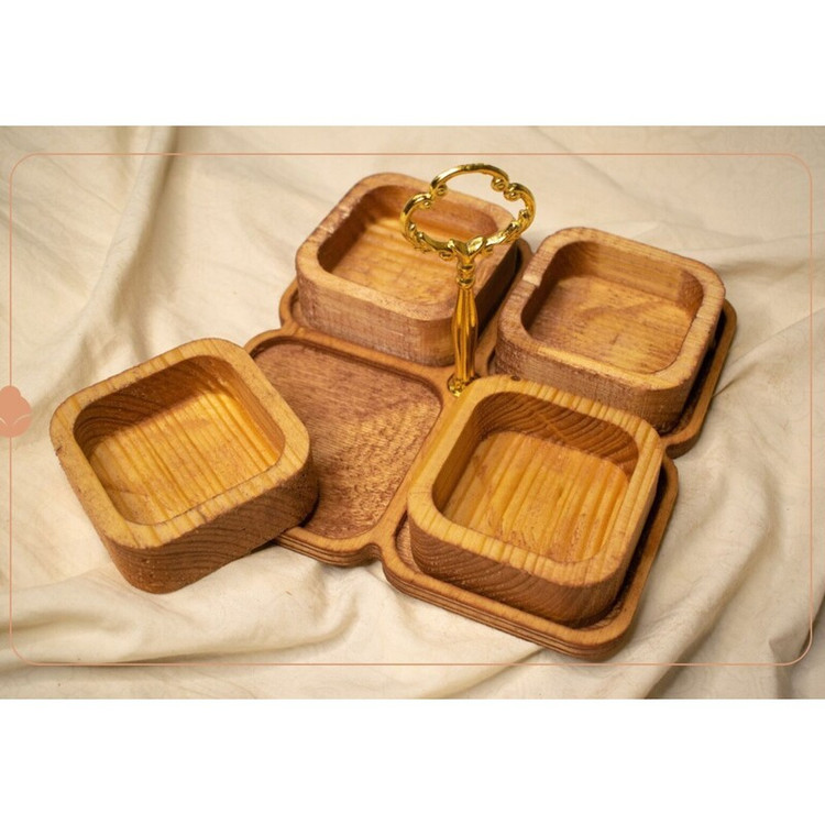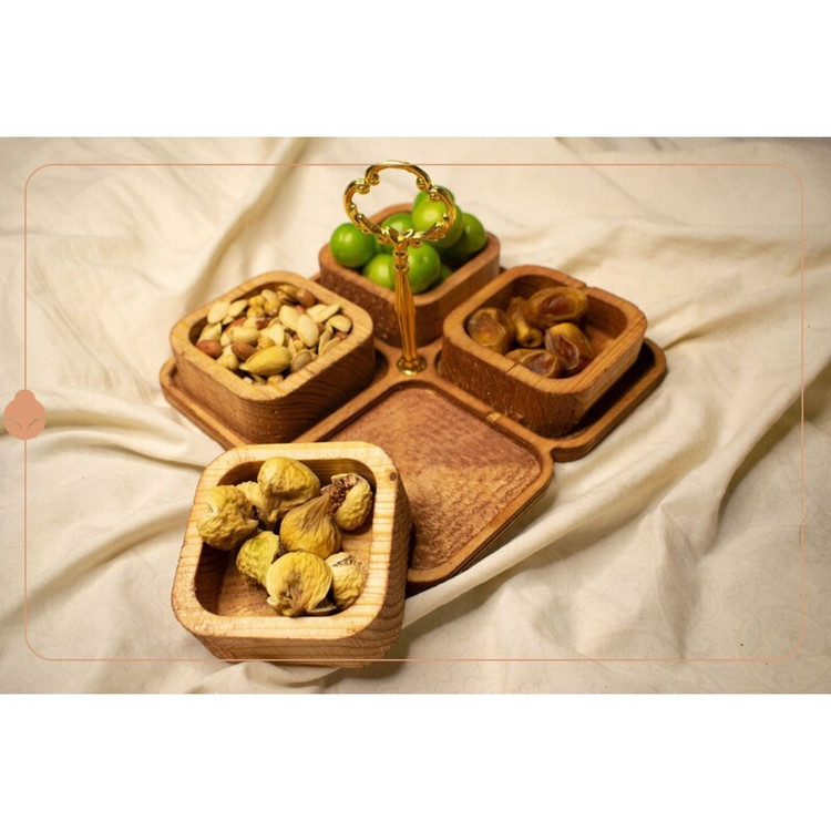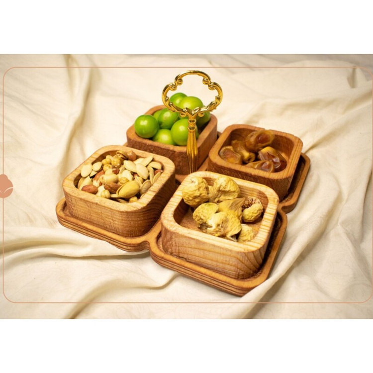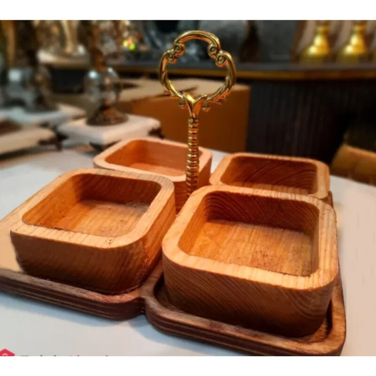 آجیل خوری چهارخانه مربع اردوخوری چهارخانه چوبی مربع اردوخوری چهارخانه دسته دار ظروف پذیرایی چوبی ست پذیرایی چوبی