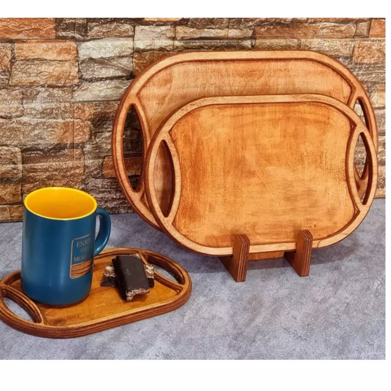 سینی چوبی بیضی دسته دار 3عددی سینی چوبی 3تایی سینی پذیرایی ست سینی عروس سینی چوبی جهیزیه