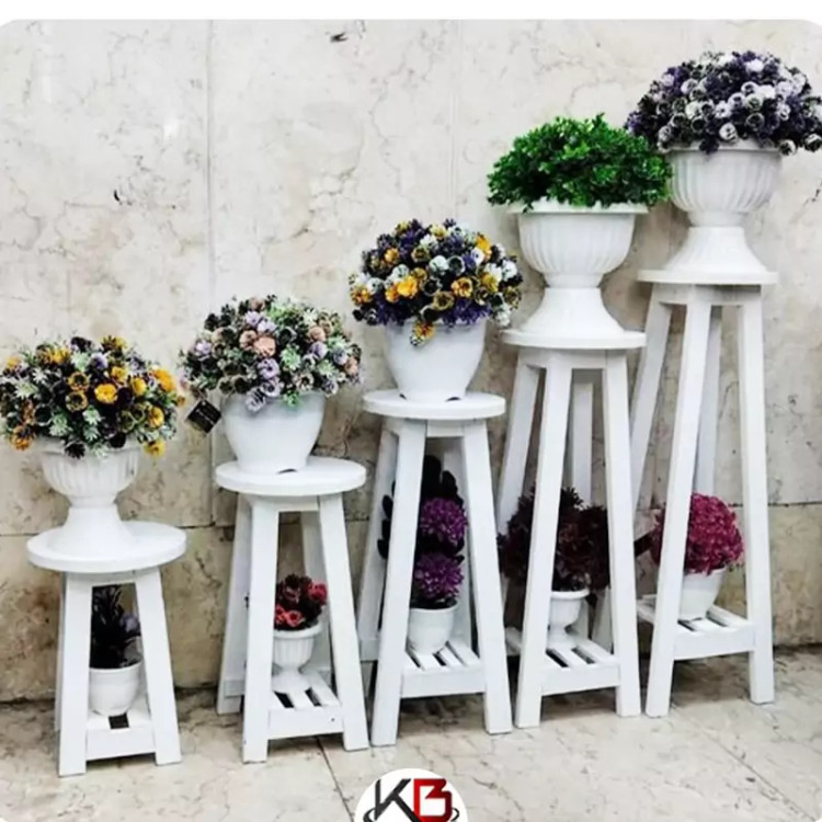 ست پایه گلدان 5تایی پایه گلدان سفید قهوه ای رایزر گلدان چهارپایه گلدان