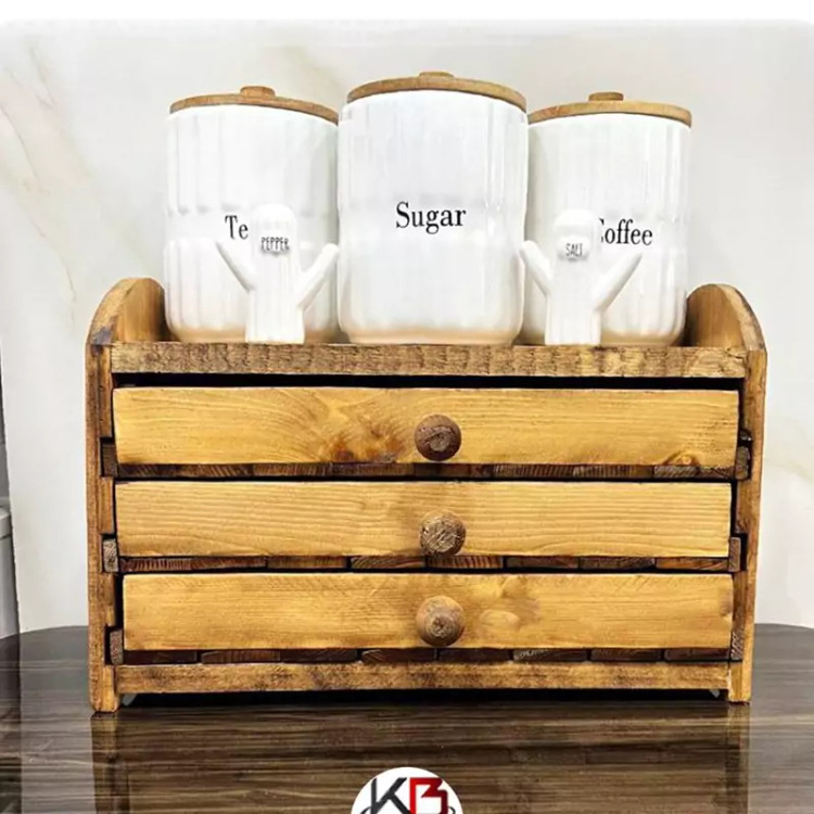 کشو 3عددی چوبی استند کشویی استند 3کشو استند چوبی کشو چوبی نظم دهنده چوبی